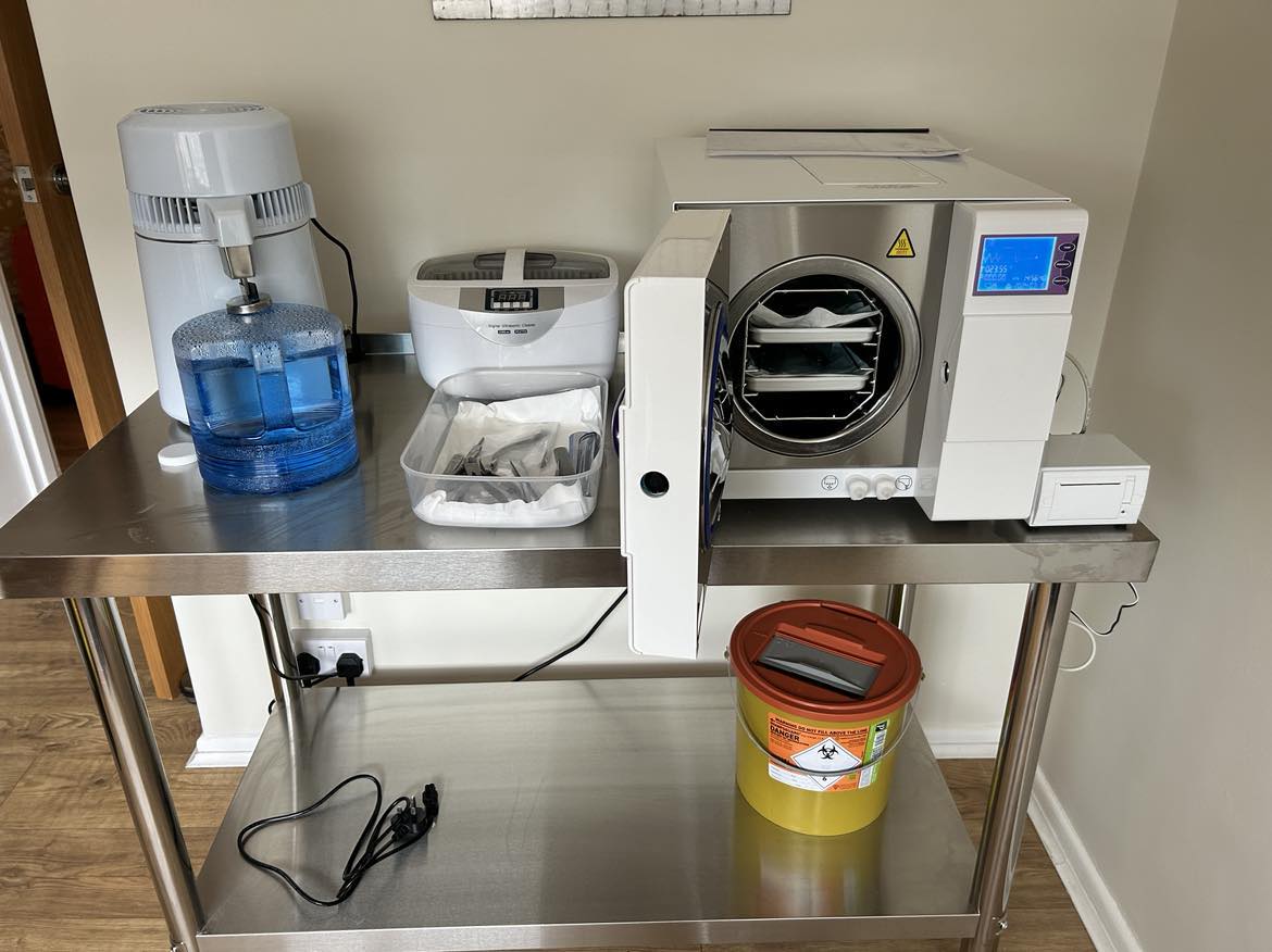 All instruments are cleaned in an ultrasonic cleaner before wrapping and sterilising at 134°C in an autoclave machine. This temperature ensures all microorganisms are killed putting patient safety at the forefront of my practice.